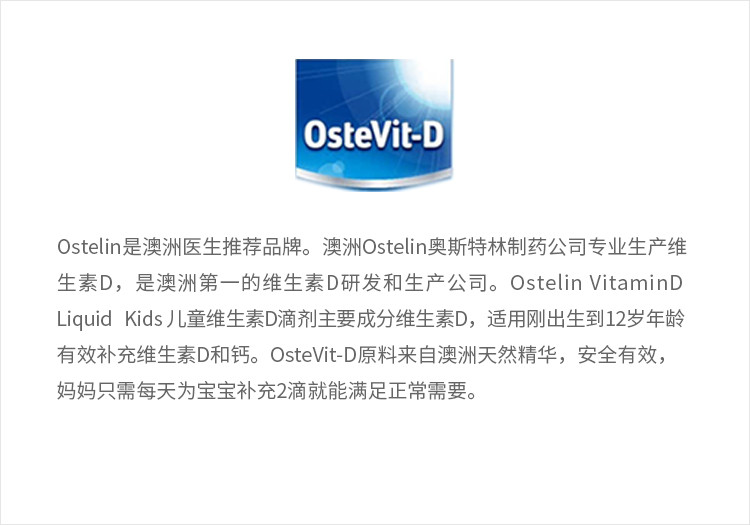 - 中文名稱 :OsteVit-D 嬰幼兒維生素VD滴劑 15ml 促進(jìn)鈣吸收(新舊包裝隨機(jī)發(fā)貨)