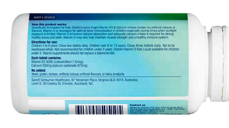 - 外文名稱 :Ostelin Kids Calcium & Vitamin D3 Chewable Tab X 90