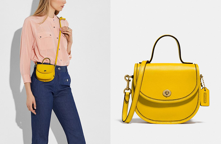 Coach的Pride系列中這款檸檬黃小挎包一下子就擊中了委員的心臟,是夏天啊!復古的馬鞍形圓底搭配小巧的手提手柄,復古清新范兒撲面而來。內里有兩個卡槽,適合帶張銀行卡和手機就出門的“說走就走”旅行。想象一下,腐國夏日燦爛的陽光下,帶上這個小包去向日葵花田拍照片,元氣滿滿的活力少女就是你吖!