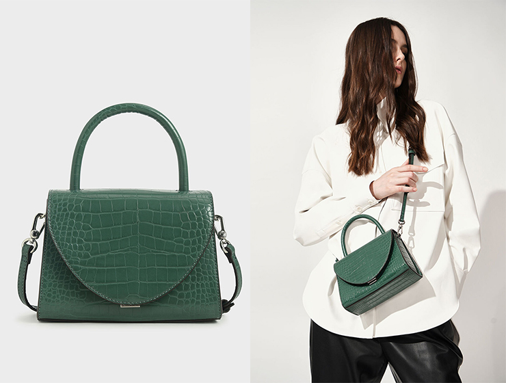 Charles & Keith Croc-Effect Structured Top Handle Bag
