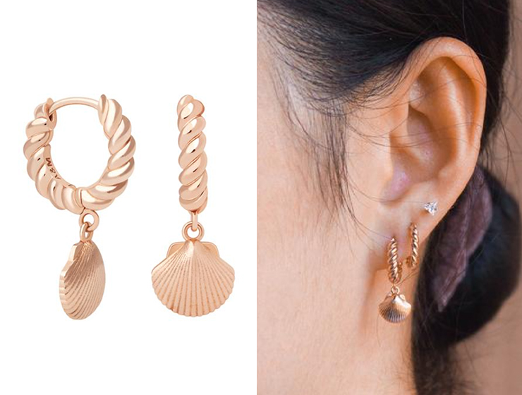 小眾首飾品牌Astrid & Miyu這對玫瑰金小貝殼耳墜仙氣十足,螺旋花紋的耳圈也顯得格外精致。這種不是很夸張的“心機款”配飾可以輕松點亮日常造型,是一款使用率非常高的單品哦。