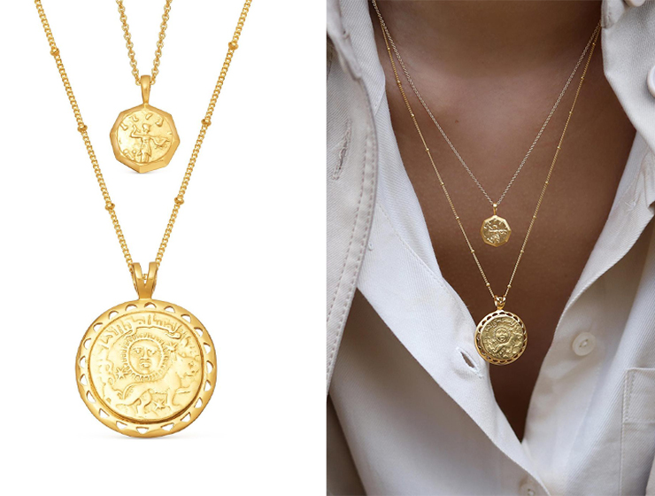 金幣項鏈是今年很流行的復古首飾。Missoma將品牌最熱銷的兩款金幣項鏈“合體”了,組合套裝的形式直接省去了搭配的煩惱。八邊形的小盤和圓形的大盤互相襯托,戴在脖子上很有立體感,能完美地襯托出脖子的線條。來吧,讓女票對你刮目相看的時候到了!
