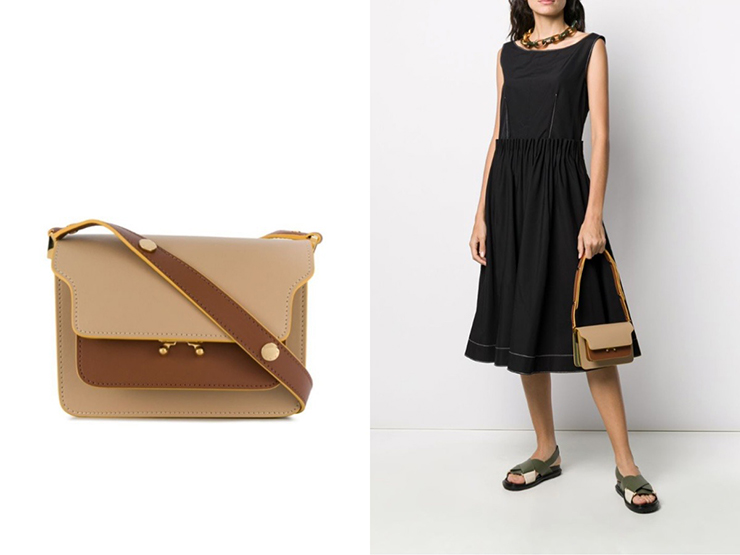 Marni經(jīng)典的風(fēng)琴包竟然也有迷你尺寸!少了成熟的通勤氣息,更顯青春活力,而且小個子女生背起來也不會顯得過于笨重。委員給你們推薦的這款并不是經(jīng)典配色,而是一個更為時髦的拼色款:焦糖色、深棕色和墨綠色搭配黃色的勾線,背上身就是超甜的溫柔女孩啊。包身側(cè)面的折疊褶皺設(shè)計和短寬的肩帶都是Trunk系列最吸引人的點,迷你版當(dāng)然也要保留這些精華了!