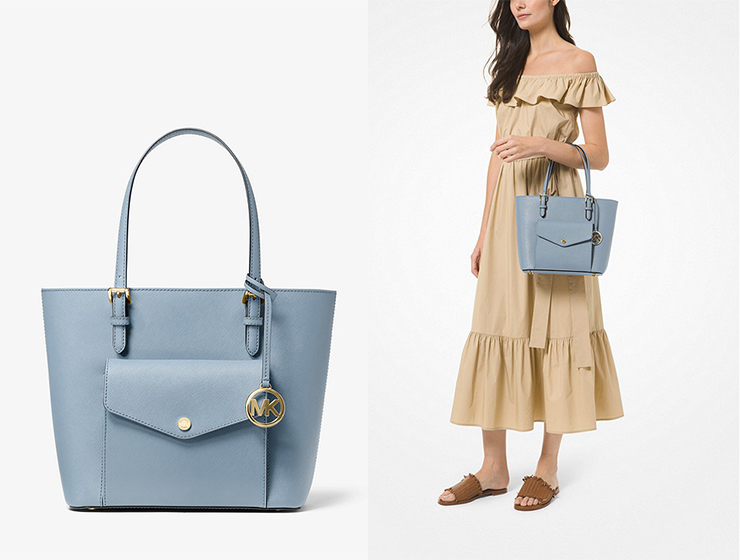 Michael Michael Kors是一個美國的輕奢品牌。這款Tote擁有干凈利落的輪廓,十字紋皮革和金色調金屬Logo裝飾讓整個包顯得精致又高級。不飽和的淺藍灰色調更是將整個包的質感提升了一個檔次,是一款很有氣質的OL風商務包。外側包、內拉鏈夾層和可調節的提手設計也貼心滿分,鑰匙、手機等隨身物品可以塞進外側的包里,超方便哦。