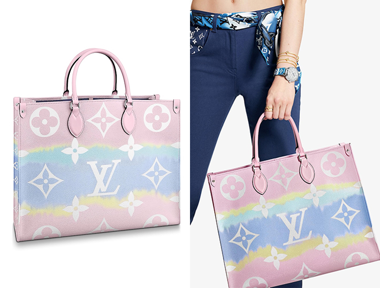 LV夏季系列以日本古老的Shibori染色工藝為靈感,推出了一系列很有海灘Feel的衣服、包包和配飾。牛仔、紅粉扎染以及糖果色的暈染都非常別致。其中這只淡粉藍Tote包包,簡直是少女必備的夢幻配色好嘛,再掛一個可愛的玩偶在上面,簡直甜到爆表啊……