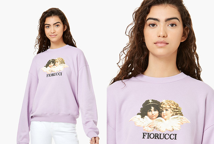 意大利時(shí)尚品牌Fiorucci的Logo特別討喜,是兩位可愛的小天使,青春浪漫氣質(zhì)滿分!它家的衛(wèi)衣一直都是明星潮人衣櫥中的必備單品。這件香芋紫的衛(wèi)衣,在視覺上就給人非常溫柔的感覺,搭配上簡(jiǎn)單的標(biāo)志性圖案,簡(jiǎn)簡(jiǎn)單單卻很有個(gè)性。走休閑風(fēng)的仙女們,第一件香芋紫單品不如就從它開始吧!