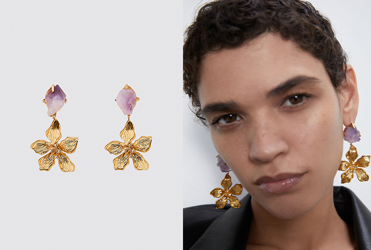 委員第一眼看到這對(duì)石花耳環(huán)就想感嘆,真是太精致了!超真實(shí)的紫色寶石貼花裝飾在耳墜上,淡紫色的寶石又增添了耳飾的溫柔感,讓整體變得華麗又貴氣。無論是出席一些重要場(chǎng)合,還是出去度假時(shí)搭配紫色小裙子,都非常合適哦!