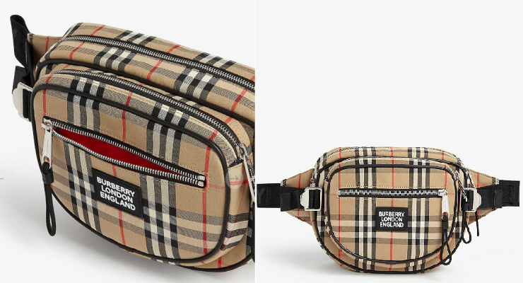 Burberry這款腰包帶有獨具一格的復古風,包身正中間印有品牌名字和英國倫敦的字樣,襯著大面積的經典格紋特別有英倫味。包包有兩個前拉鏈袋和一個大主隔層,可以將所有日常的零碎物品分類。黑色的腰帶上印著淺一色的Logo,搭配衛衣和運動褲,一個帥氣又時尚的造型就搞定啦。