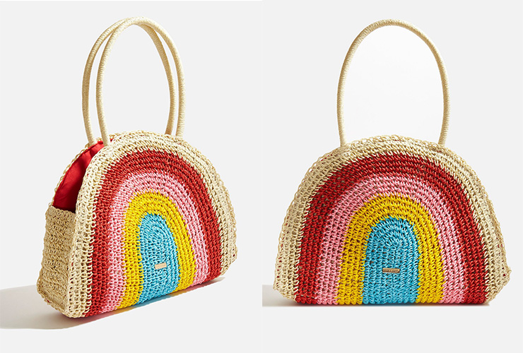 今年夏天另一個很火爆的元素就是彩虹啦,很多品牌都推出了彩虹紋樣的單品,草編+彩虹,這個組合簡直是“時髦王炸”,加上半圓形的造型,又多了一絲童趣。搭配上其它彩虹單品例如Burberry的T恤和匡威的彩虹鞋,這套厲害的炸街組合時髦精速度get起來啊!