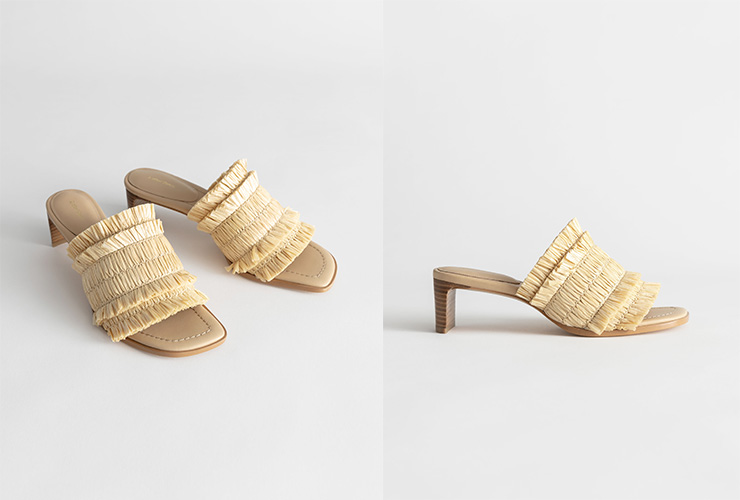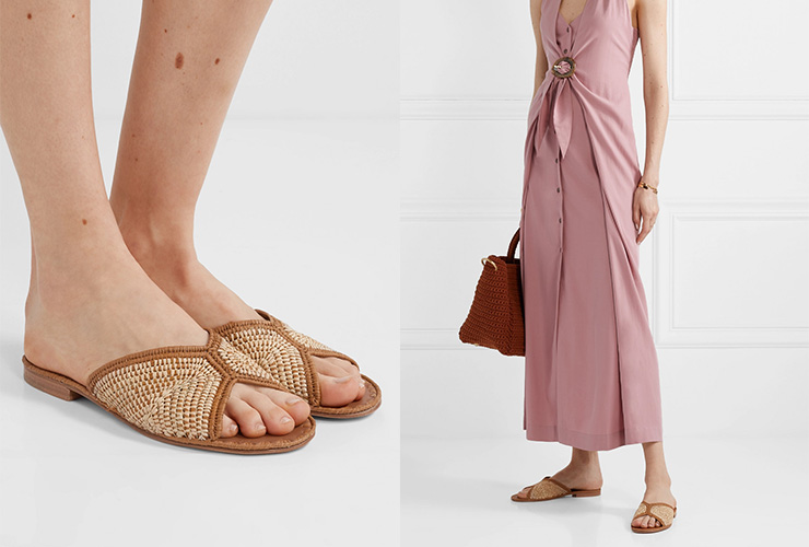 這個來自摩洛哥的品牌Carrie Forbes,每一雙鞋都是由工匠花費大量時間手工編織而成的,他們使用傳統的摩洛哥技術,設計制作出來的鞋子不僅精致,而且耐穿。這雙草編拖鞋由米黃色和棕褐色混搭而成,造型上很修飾腳型,小胖腳們也會瞬間變修長。平跟拖鞋穿起來本身就舒適方便,度假時搭配一個飄逸的仙女裙,完美!