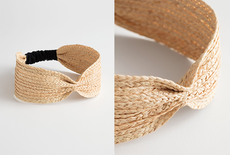 有的時候啊一件小小的頭飾也會給全身的搭配帶來讓人眼前一亮的感覺,絕對是拗造型的法寶之一哦!& Other Stories的這款草編發帶有著俏皮的蝴蝶結褶皺設計,松緊帶還可以幫助適應不同的頭圍,是不是貼心又優秀!一戴上它就算你只穿一個白T,都可以瞬間打造出清新治愈的度假風,回頭率妥妥的!