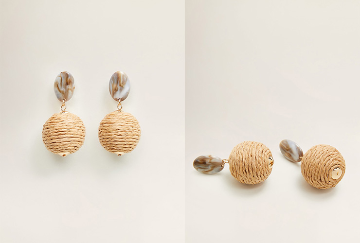 Mango家的耳環不僅價格親民,樣子也是十分可愛?;y石頭連接著圓圓的草編球,一戴上就很有度假氣息,隨便配上一條小白裙就超有時尚態度了哦。
