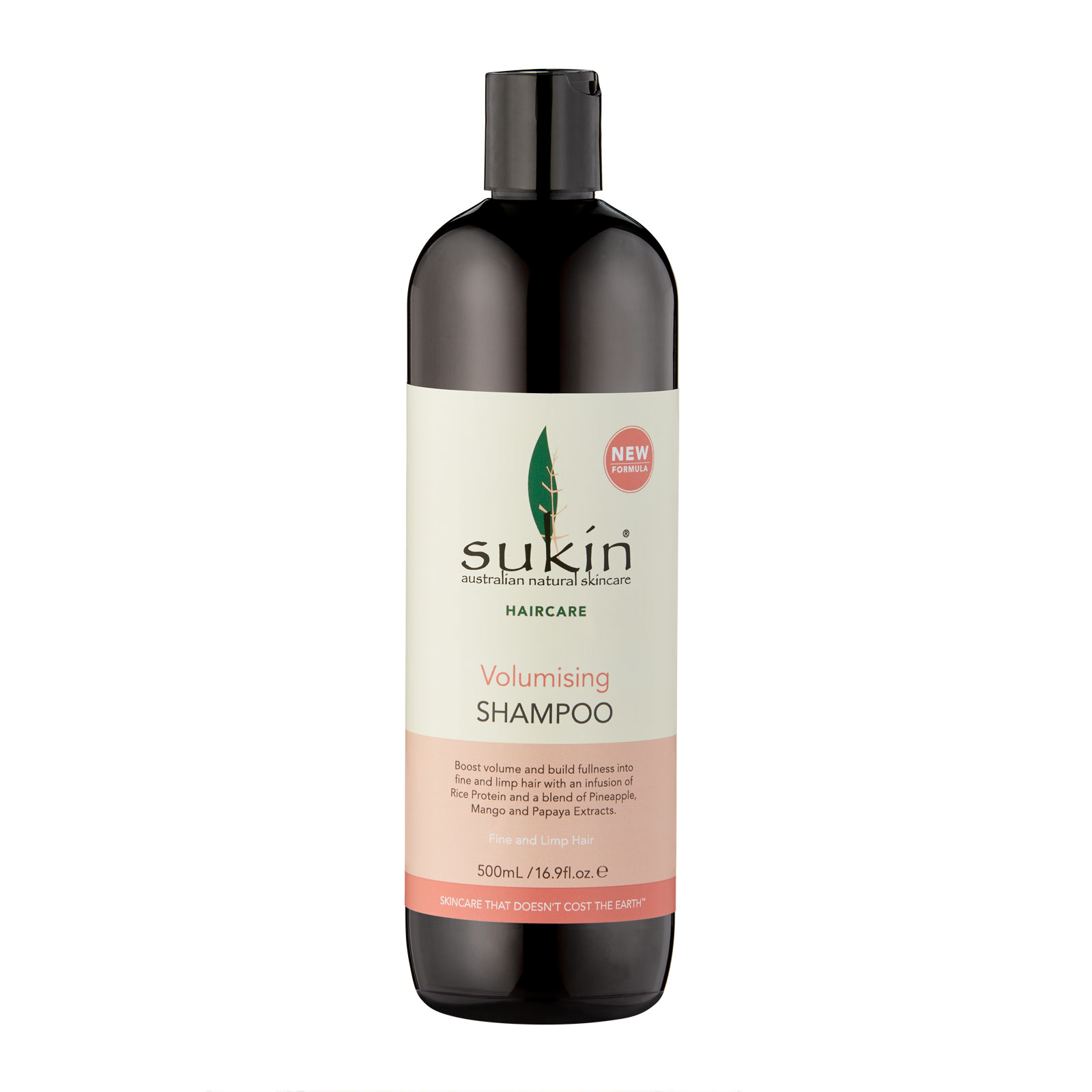 Sukin lightweight and purifying Volumising Shampoo boosts volume and builds fullness into fine and limp hair Rice Protein assists to improve hair strength while a blend of Pineapple, Mango and Papaya Extracts nourish the scalp, leaving hair feeling soft and silky A natural Mango aroma refreshes the senses