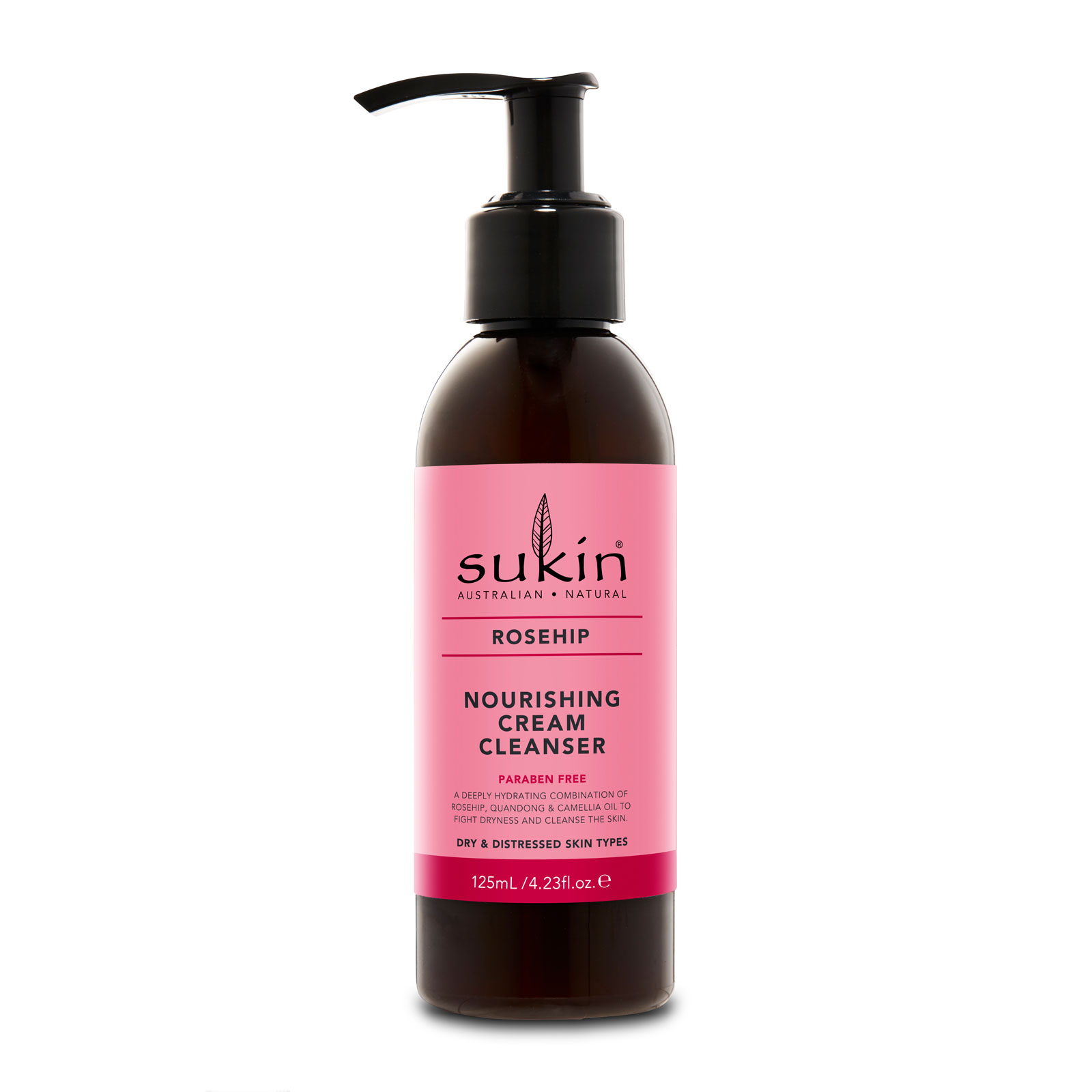 Sukin Rose Hip Nourishing Cream Cleanse works to remove makeup, oil and dirt build up on the skin A blend of Rosehip & Borage Oils and Quandong Extract nourish and hydrate, while an infusion of Shea Butter, Evening Primrose Oil and Camelia Oil work to refresh and rejuvenate tired skin