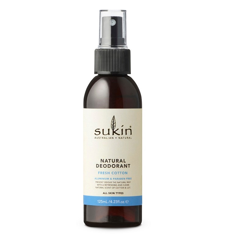 Sukin 蘇芊 天然花香止汗噴霧蘊含棉花、百合、茉莉和雪松的清爽天然香氣,和止汗成分。富含的蘆薈,牛蒡和蕁麻提取物的混合物有助于涼爽和舒緩皮膚,而苯酚磺酸鋅則有助于防止細菌生長。能迅速止汗,保持肌膚干爽清新。