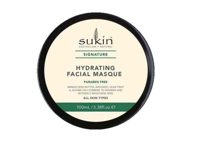 Sukin Hydrating Facial Masque is rich in Mango Seed Butter and a blend of Avocado, Olive Fruit and Jojoba Oils to nourish and provide intense moisture to the skin Enzymes of Papaya and Pineapple nourish the complexion and impart fruit acids and vitamins, leaving skin feeling smooth with a healthy glow Suitable for all skin types, especially dehydrated skin