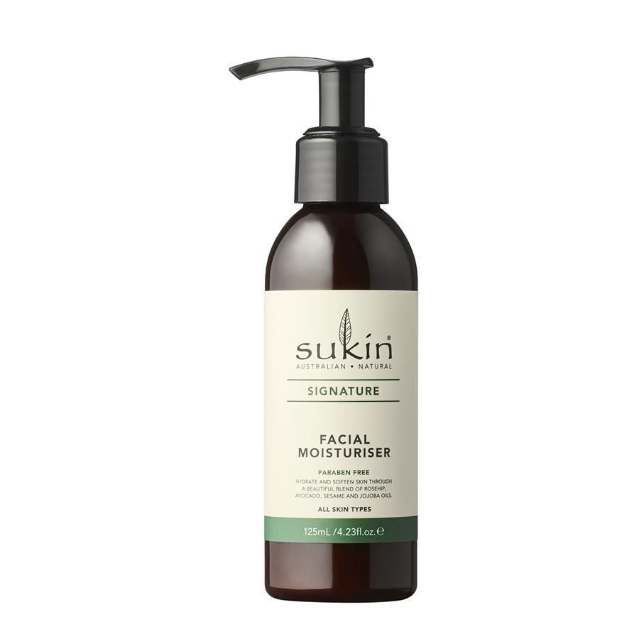 Sukin 純天然面部護理保濕霜,質感輕盈的乳霜,能被肌膚容易吸收,可以為肌膚補充足夠的水份,滋養及修護肌膚;蘊含荷荷巴油、酪梨油、小麥胚芽油、玫瑰果油及維他命E,能舒緩肌膚,令肌膚感覺柔軟舒適,更具備抗氧化功效,有助修復肌膚;配方不含人造成份,包括人造香料及苯甲酸酯類。