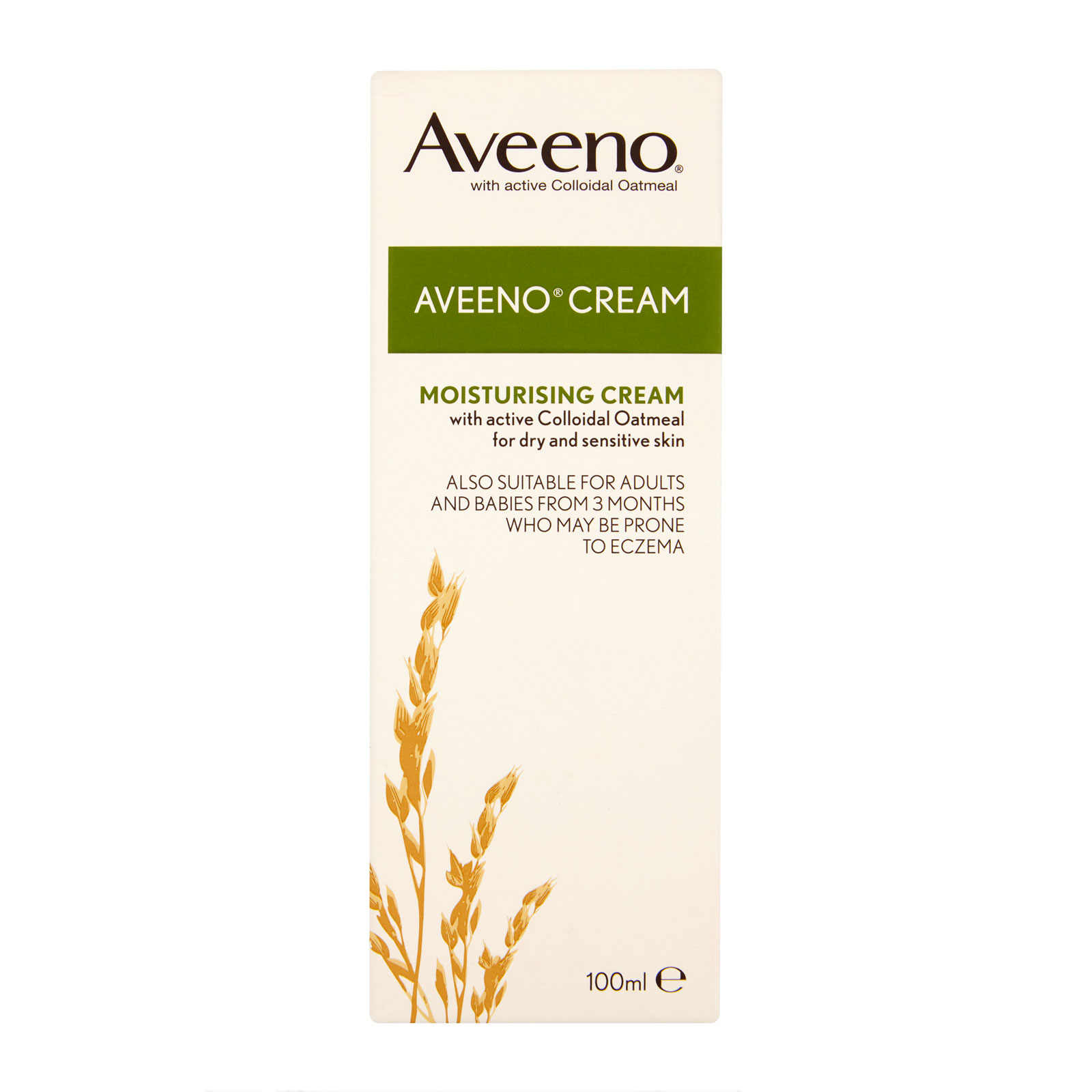 Aveeno Moisturising Cream is formulated with Colloidal Oatmeal to actively moisturise dry and sensitive skin Regular use hydrates the skin leaving it feeling comfortable, soft and smooth Also suitable for adults and babies from 3 months who may be prone to eczema