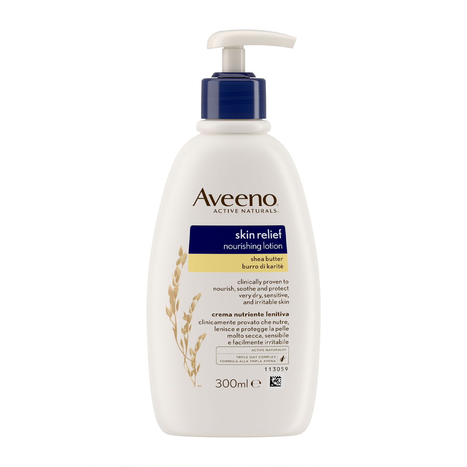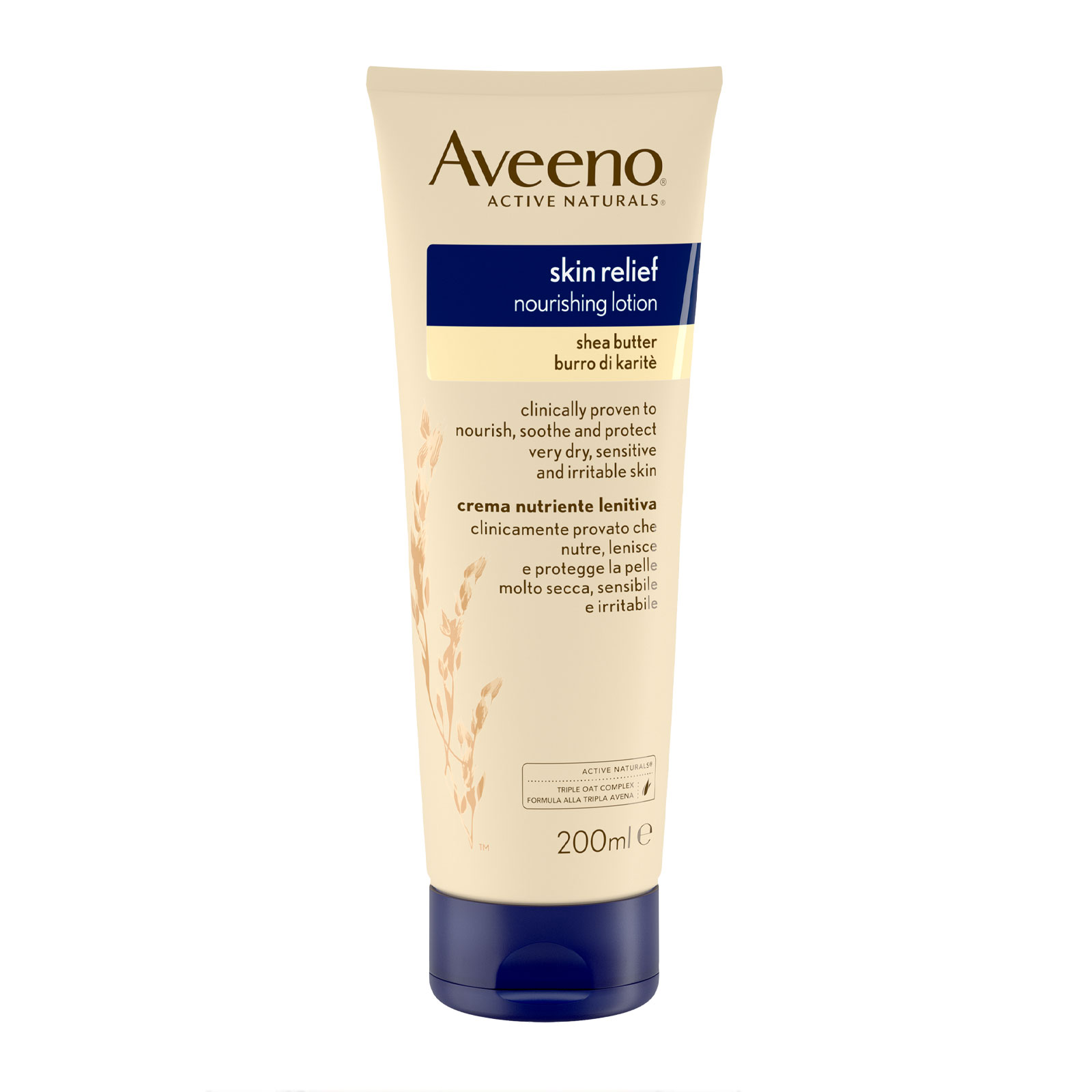 Aveeno Skin Relief Nourishing Shea Butter Body Lotion combines the Triple Oat Complex with Shea Butter This unique formula intensely nourishes very dry, sensitive and irritable skin It is clinically proven to moisturise and soothe the skin from day 1 while protecting it from dryness For healthy-looking skin that feels softer and more comfortable