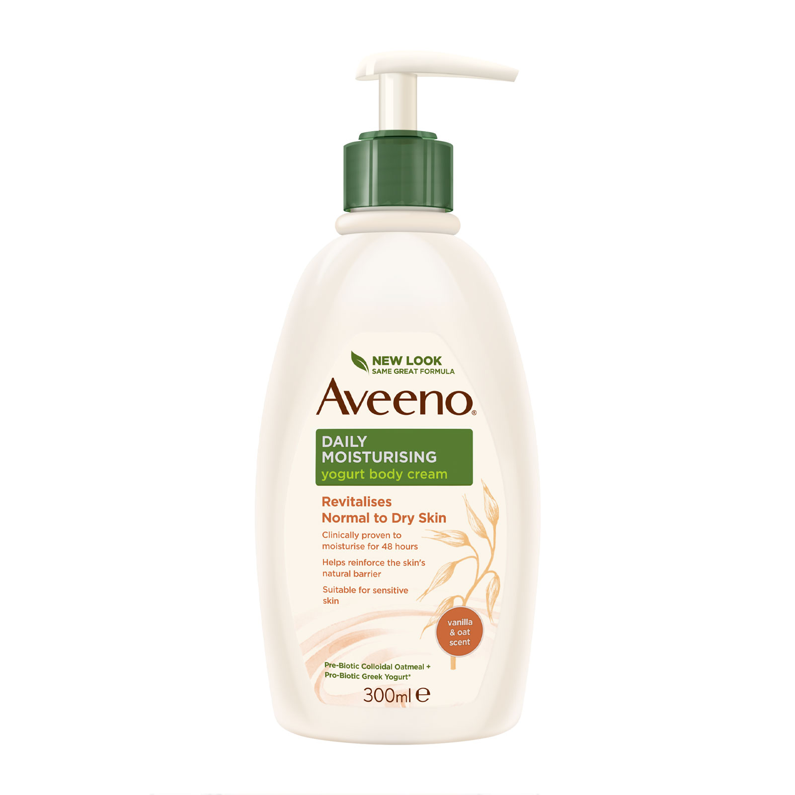Aveeno Daily Moisturising Vanilla & Oats Yogurt Body Lotion enriched with colloidal oatmeal and Greek yogurt, saturates your body with nourishing moisture With a delicious smelling fragrance, the clinically proven formula revitalises dry skin