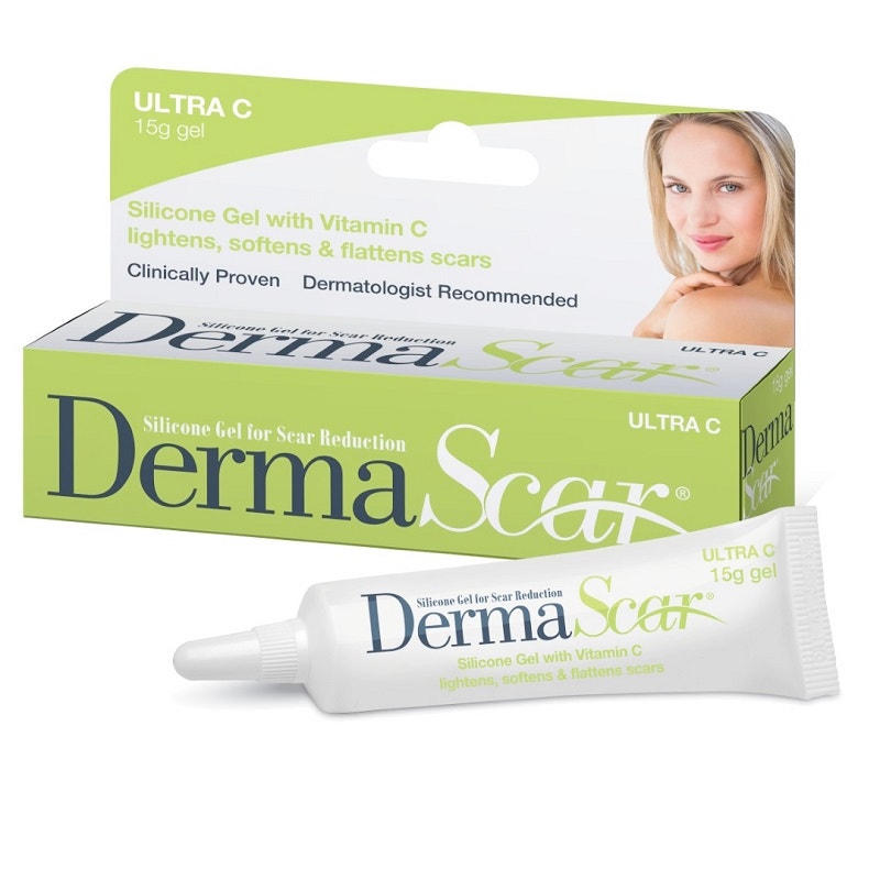DermaScar 治療疤痕凝膠(幫助瘢痕疙瘩和增生性疤痕的修復)是一種可對疤痕進行處理的外用硅凝膠。主要成分為聚硅氧烷和維他命C,與外用硅凝膠膜所采用的長鏈高分子材料相同。可被身體迅速吸收,包括臉、關節及皮膚任何部位。