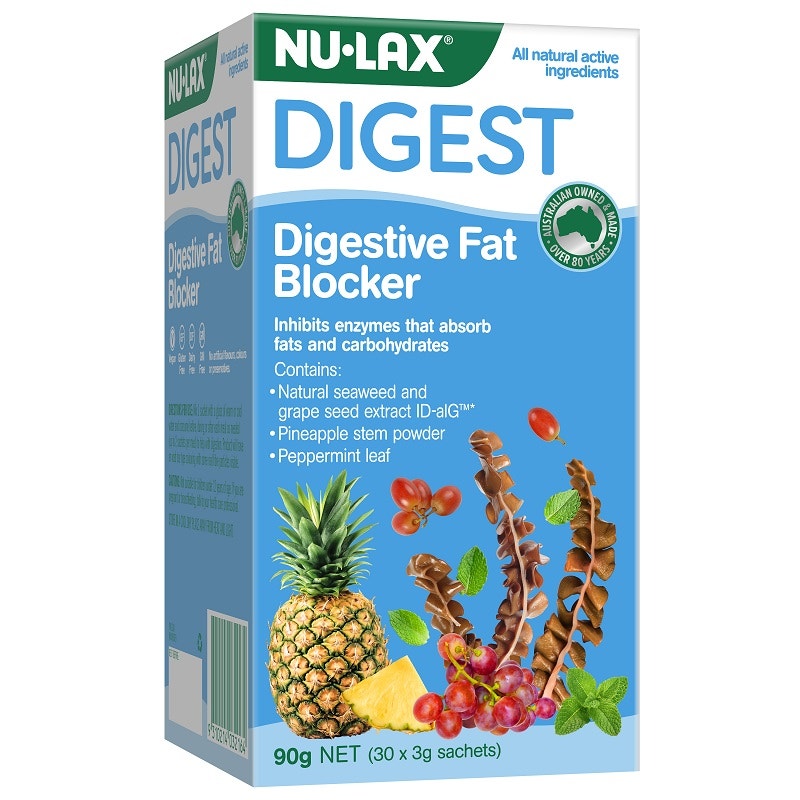 Nu-Lax脂肪阻斷纖維粉,包含臨床試驗的天然海藻和葡萄籽提取物,可抑制負責脂肪和碳水化合物吸收的酶。還含有薄荷葉和菠蘿莖粉,可以幫助消化蛋白質。同時含有發酵益生元纖維,助消化。