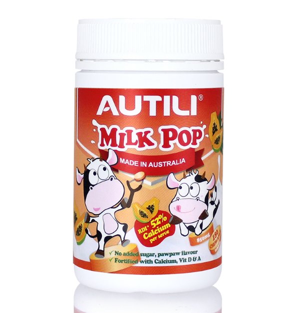 Autili 澳特力 850mg 高鈣牛奶咀嚼片(木瓜味)是一款新推出的奶片,采用純正的天然奶源,木瓜奶味濃郁,吃起來跟保存都更加方便,含有豐富的高濃縮鈣營養價值,小小一片即可滿足日常生活所需的能量來源,讓上班族精力更充沛,小孩子發育更全面,父母們更活力與耐力,全面保護身體機能健康成長。