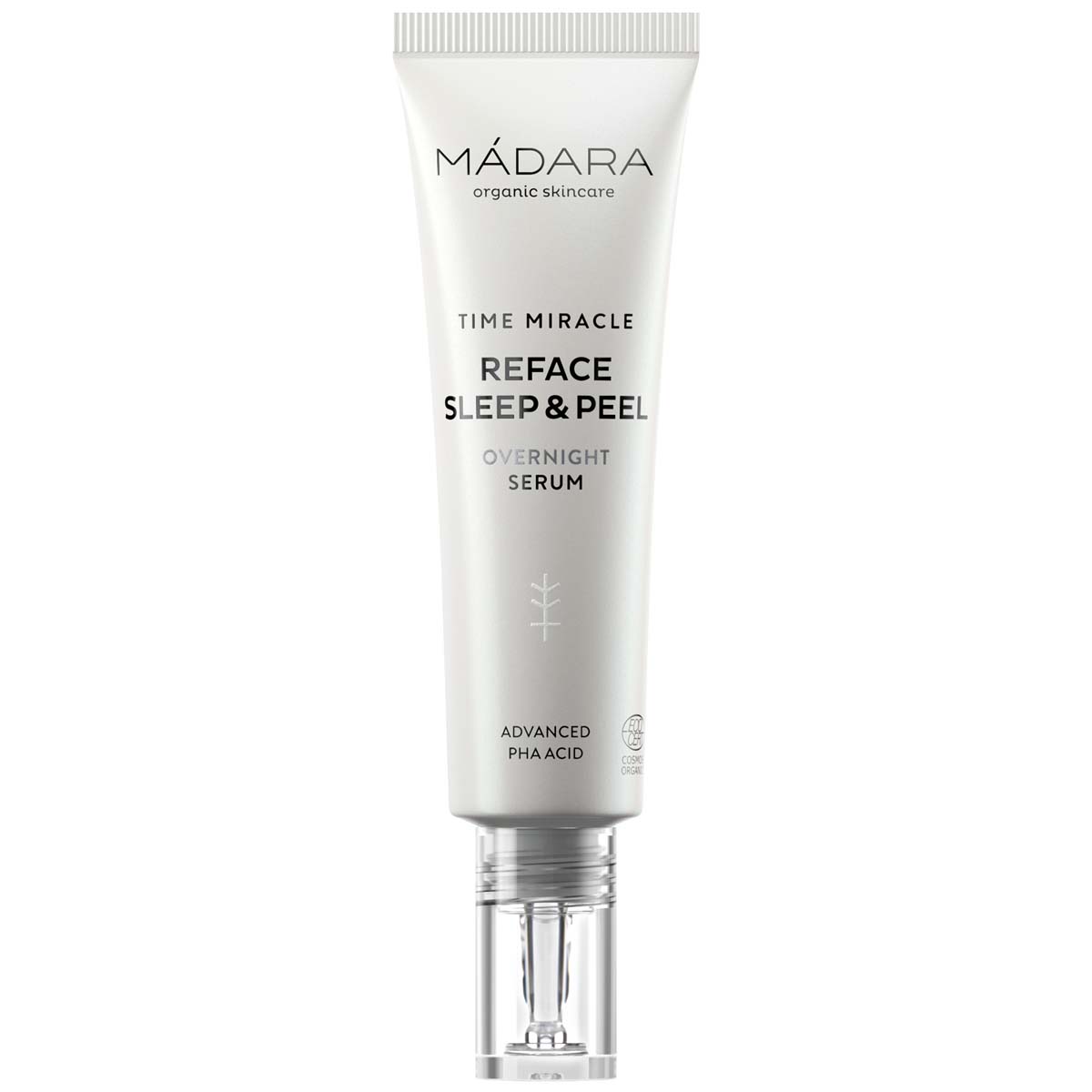 Discover Madara TIME MIRACLE Reface Sleep & Peel Overnight Serum, a natural certified ultra-refined exfoliating serum Diminish signs of ageing and fatigue during your beauty sleep with this deeply rejuvenating, ultra-refined serum