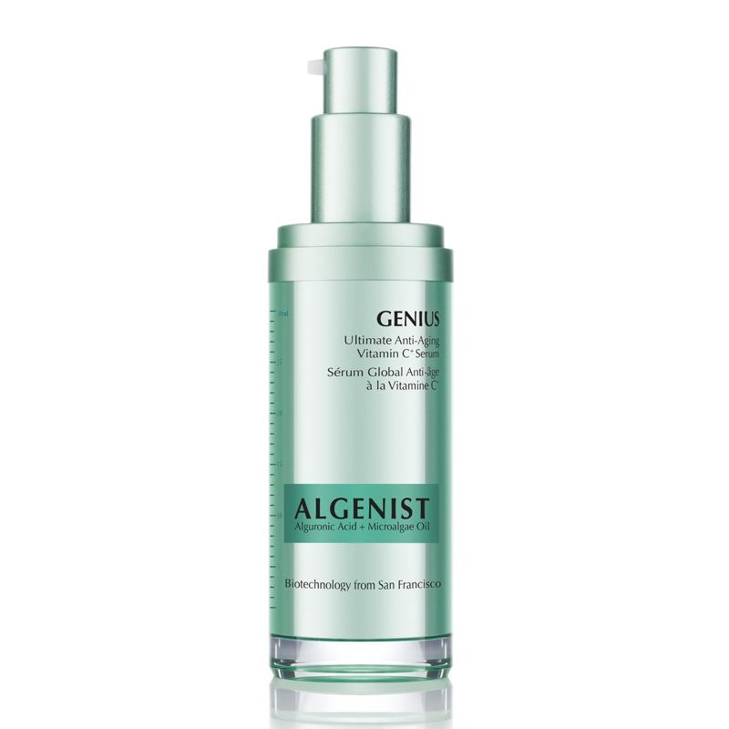 "For the first time, the powerful formula of ALGENIST Genius Ultimate Anti-Aging Vitamin C+ Serum combines Alguronic Acid (patented), a breakthrough anti-ageing ingredient, with nourishing Microalgae Oil and a potent Vitamin C derivative* to help visibly minimise fine lines and wrinkles and reduce the appearance of age spots and discoloration