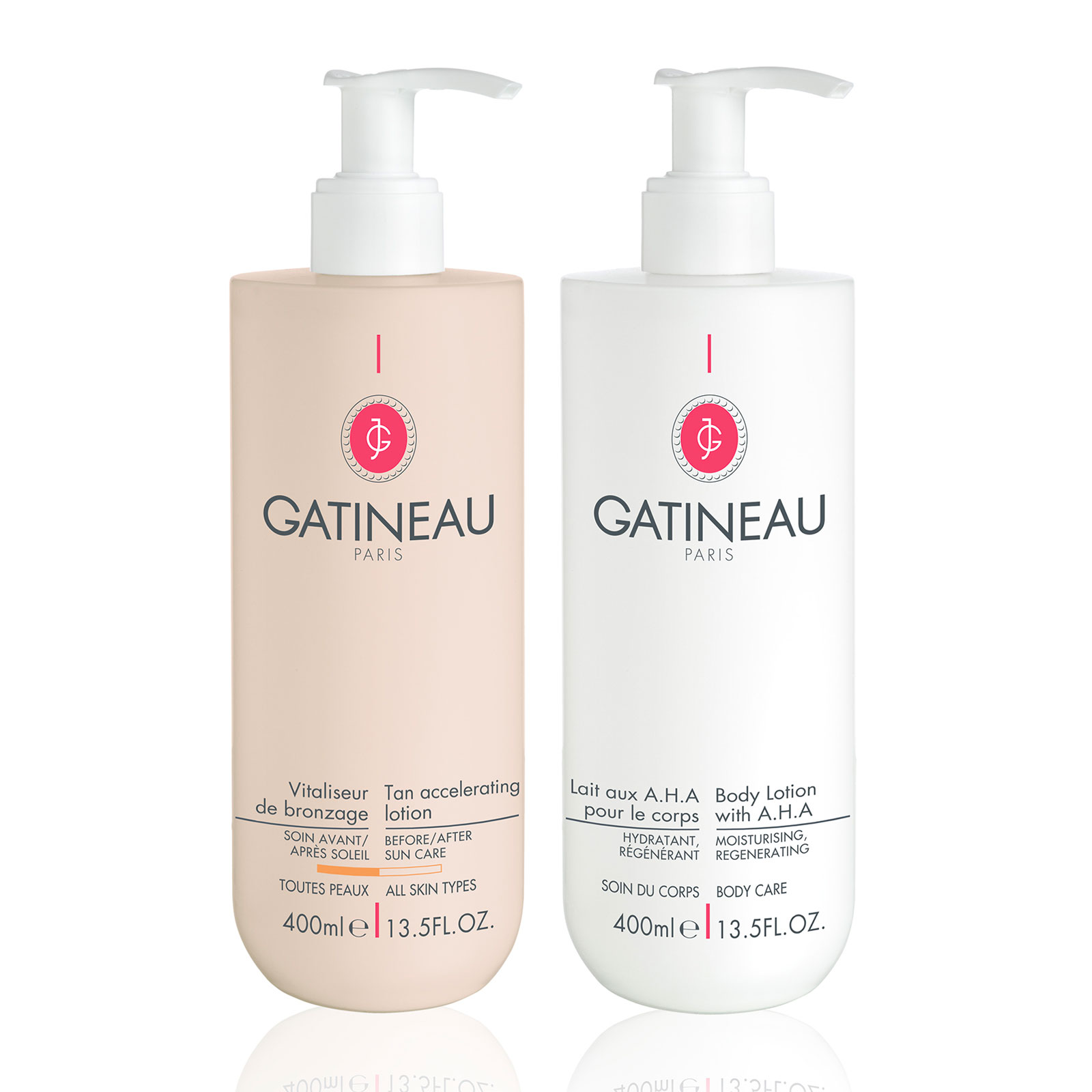 Treat yourself to this supersize indulgent duo from Gatineau s coveted Body Range! Including the best-selling and iconic Tan Accelerator which stimulates melanin production to give you a deeper, warmer tan when you see the sun, and AHA Body Lotion - rich in Shea Butter and grafted AHA s from Passion Fruit to nourish, hydrate and protect