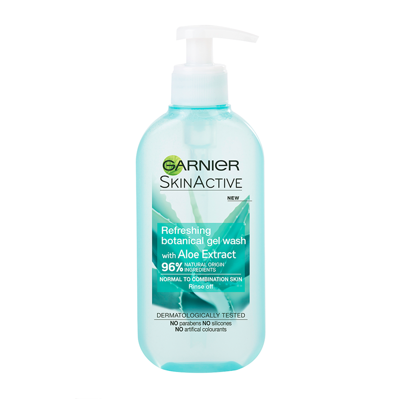 Garnier’s first gel wash made with 96% ingredients of natural origin, enriched with Aloe Vera Extract, known for its hydrating powers Garnier Skin Active Naturals Aloe Vera Botanical Gel Wash efficiently removes excess sebum, impurities and pollution for perfectly clean, fresh and hydrated skin