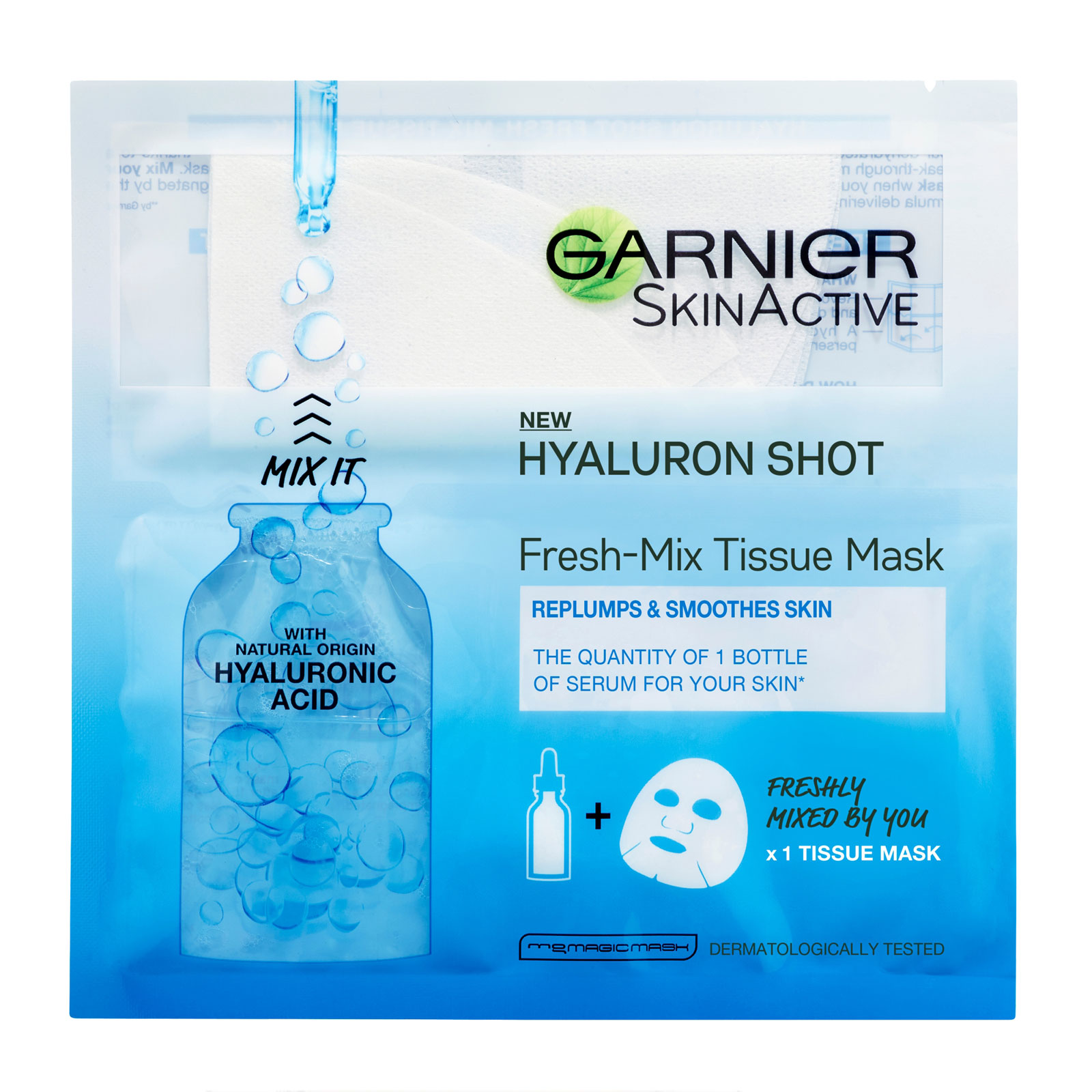 Discover Garnier Hyaluron Shot Fresh-Mix Tissue Mask, the first ‘DIY mix-it-yourself shot mask, by Garnier