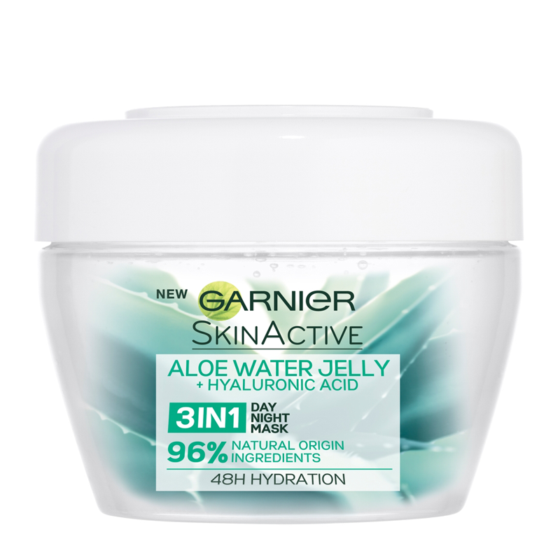 Refresh dehydrated skin with Garnier Skin Active 3 in 1 Hydrating Aloe Water Jelly This intensely hydrating jelly, with Organic Aloe Vera and Hyaluronic acid instantly re-hydrates thirsty skin and locks in moisture for up to 48 hours
