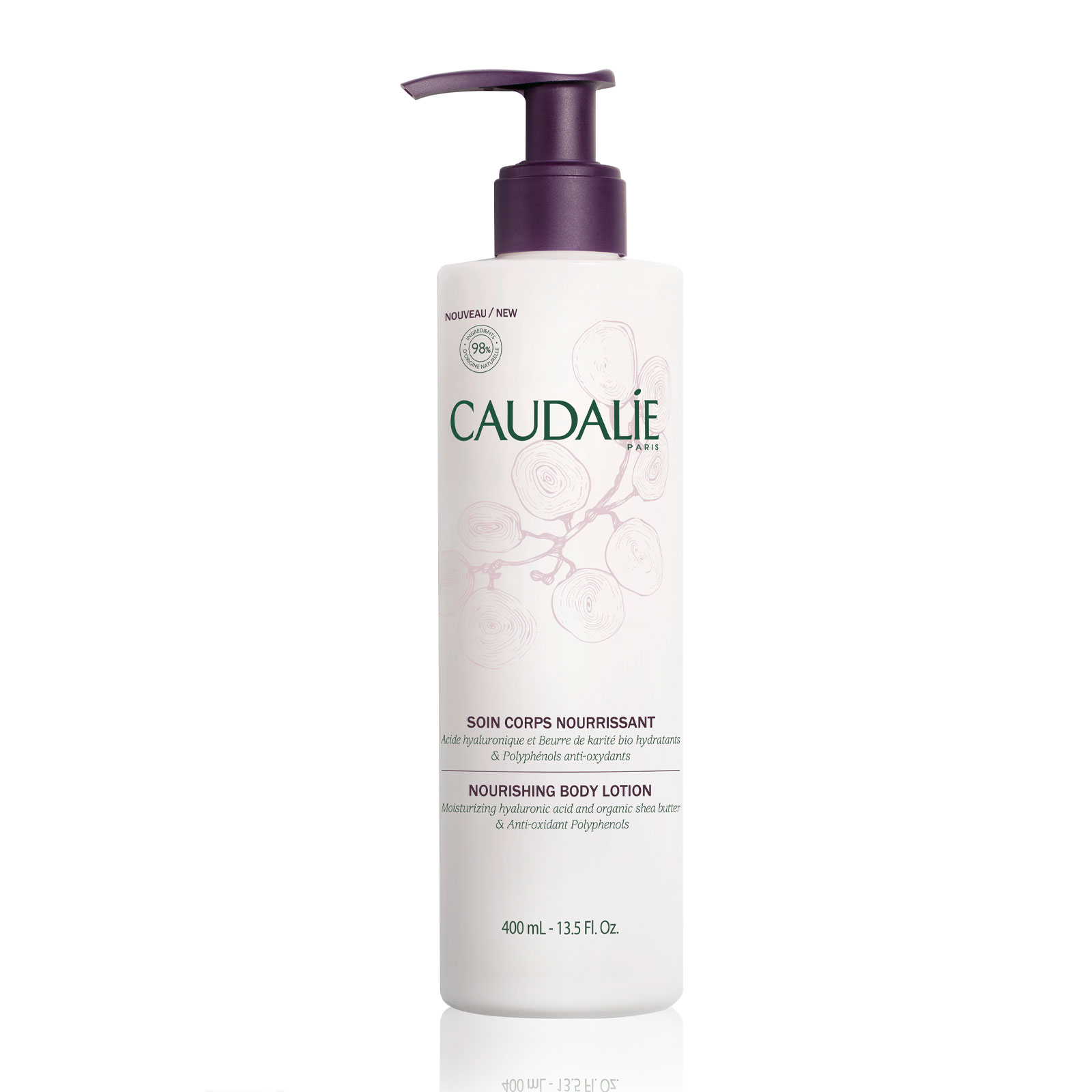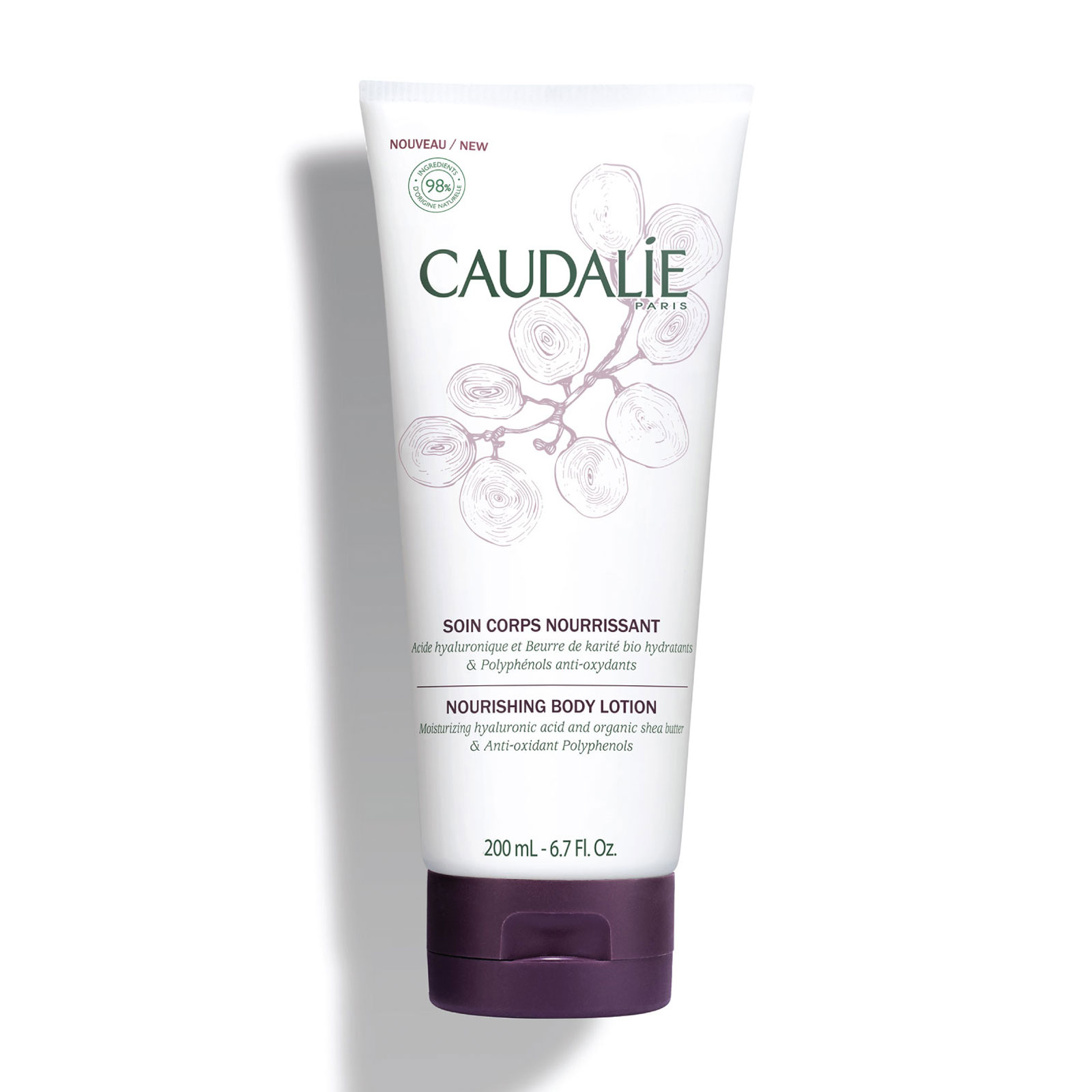 Caudalie s Nourishing Body Lotion enriched with the moisturising power of Hyaluronic Acid and with soothing organic grape water provide intense moisture and comforts the skin This velvety body lotion leaves the skin soft, supple and radiant It immediately moisturises your skin with a long-lasting effect and its fresh, light, non-sticky texture leaves the skin soft