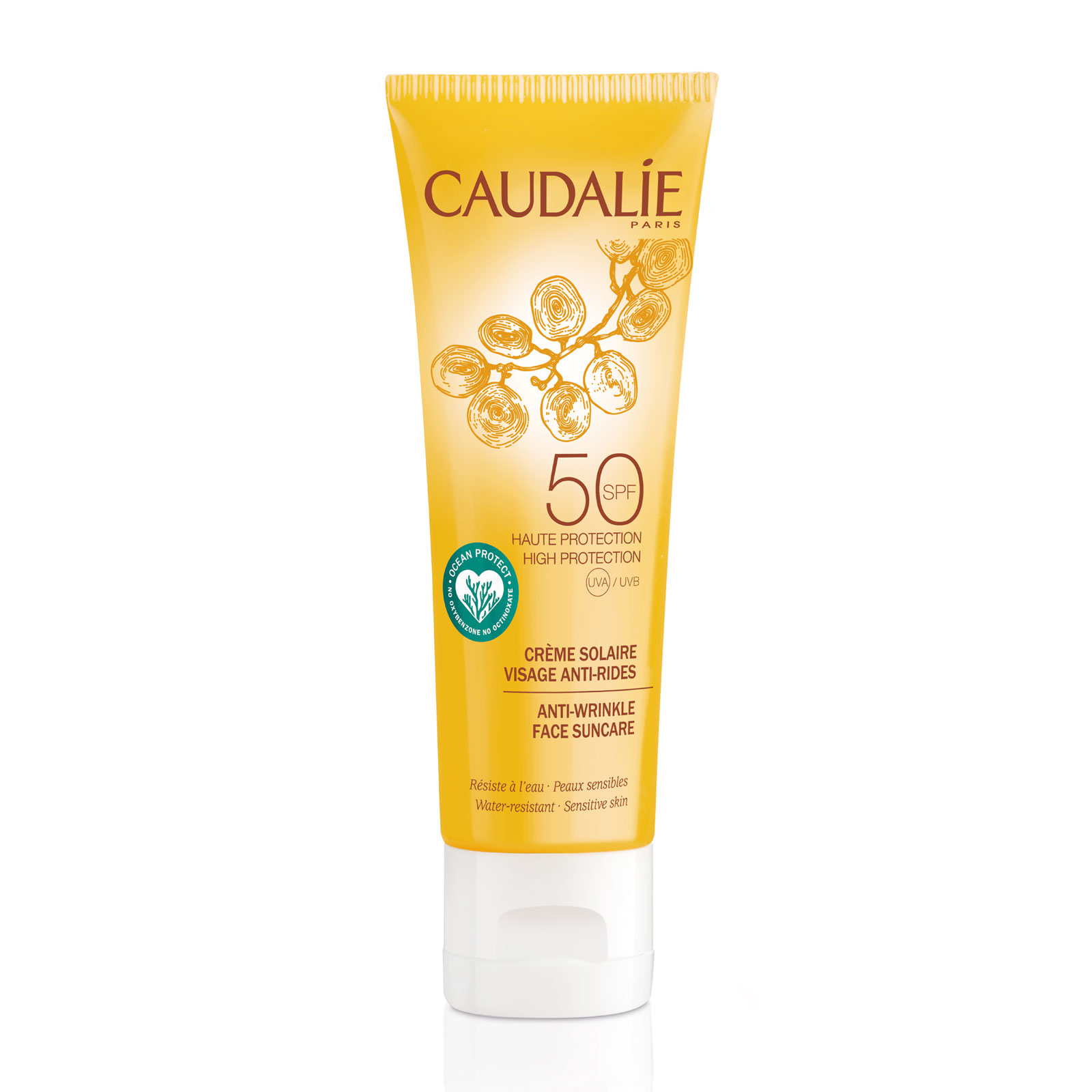 Caudalie 歐緹麗 葡萄籽抗皺修護防曬乳 SPF50 50ml 能提供全面的防曬保護,抗老化,保護皮膚免受UVA和UVB的傷害,同時防止自由基對皮膚的傷害。富含舒緩成分有機葡萄水和抗氧化復合物,令肌膚保持水潤。本品質地輕盈,易于涂抹,能迅速吸收,不油膩。讓您的肌膚保持美麗滋潤,自然光澤。