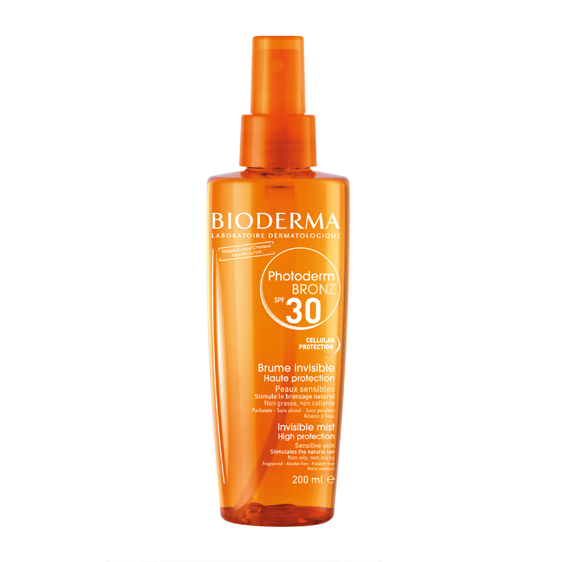 BIODERMA Photoderm BRONZ Invisible Mist SPF 30 offers the dermatological safety of a high protection, combined with a 100% transparent, non oily and non sticky texture Its exclusive tanning complex activates, intensifies and durably prolongs the natural tan An alcohol-free formula, it offers excellent tolerance and does not dry the skin