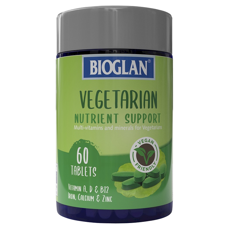 Bioglan 復合營養補充片,專為素食主義者設計的營養補充配方,含有維生素A、D、B12、鐵、鈣和鋅,以減少健康人因飲食攝入不足,特別是從常規飲食轉變為素食 純素飲食時可能出現的營養不足風險。
