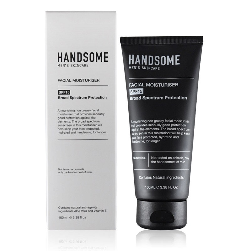 Handsome 男士護膚抗衰老滋養保濕霜(SPF15)富含天然植物精華,具有抗衰老特性,有效提高肌膚的內部保濕力,保持肌膚滋潤柔軟,使皮膚倍感舒適。且面霜中含有SPF15的防曬指數,可以有效的隔離紫外線以及環境中的其他有害物質對肌膚的傷害,改善血液循環,修復受損細胞,對抗細胞氧化