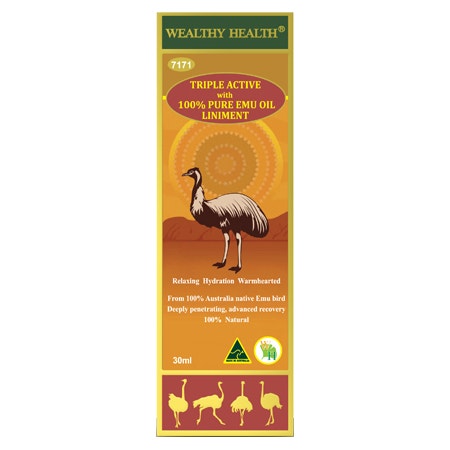 Wealthy Health 富康 三倍活性100%鴯鹋油科學添加了澳洲堅果油,桉樹油,山金車油,小麥胚芽油和鴯鹋油,多效組合配方具有非常好的滲透,吸收,消炎,排毒保濕滋潤功效。還具有優質的防曬,防凍,止癢,消腫的作用。是一款高效滋養護理油,在補水和修護同時進行,重新喚醒肌膚細胞