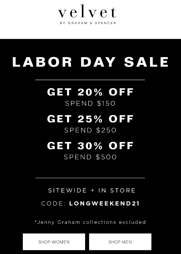 美國時尚品牌Velvet官網精選服飾,滿$150享8折、滿$250享75折、滿$500享7折優惠。需用碼