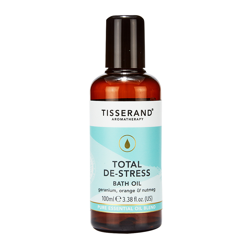 Take a moment to slow down and soak worries away with this Tisserand Aromatherapy Total De-Stress Bath Oil comforting blend of Geranium, Orange & Nutmeg 100% natural pure essential oils