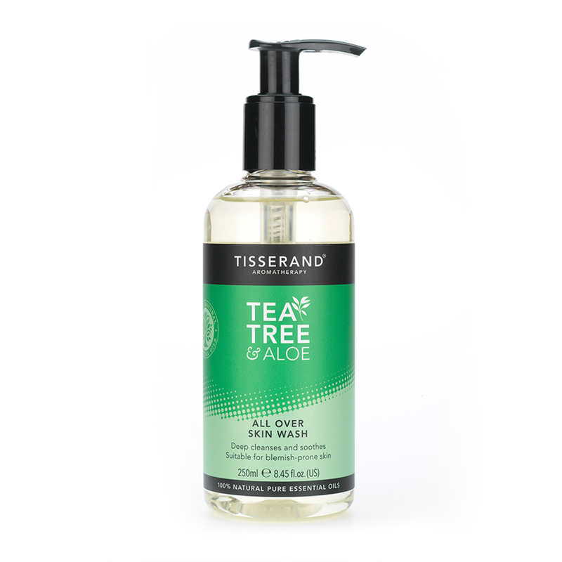 This all-over wash purifies, balances & deep cleanses skin, helping to remove impurities from head to toe The experts at Tisserand Aromatherapy have blended Tea Tree 100% natural pure essential oil known for its cleansing & purifying properties with Aloe Vera extract to help calm and soothe the skin