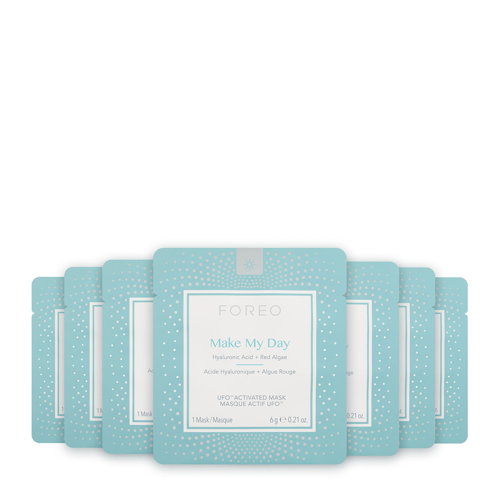 Each premium mask formula pairs with a unique UFO routine designed to ensure glowing skin from morning ‘til night FOREO Make My Day UFO? Activated Mask s feature Hyaluronic Acid and Red Algae for deep hydration combined with pollution protection for radiant skin