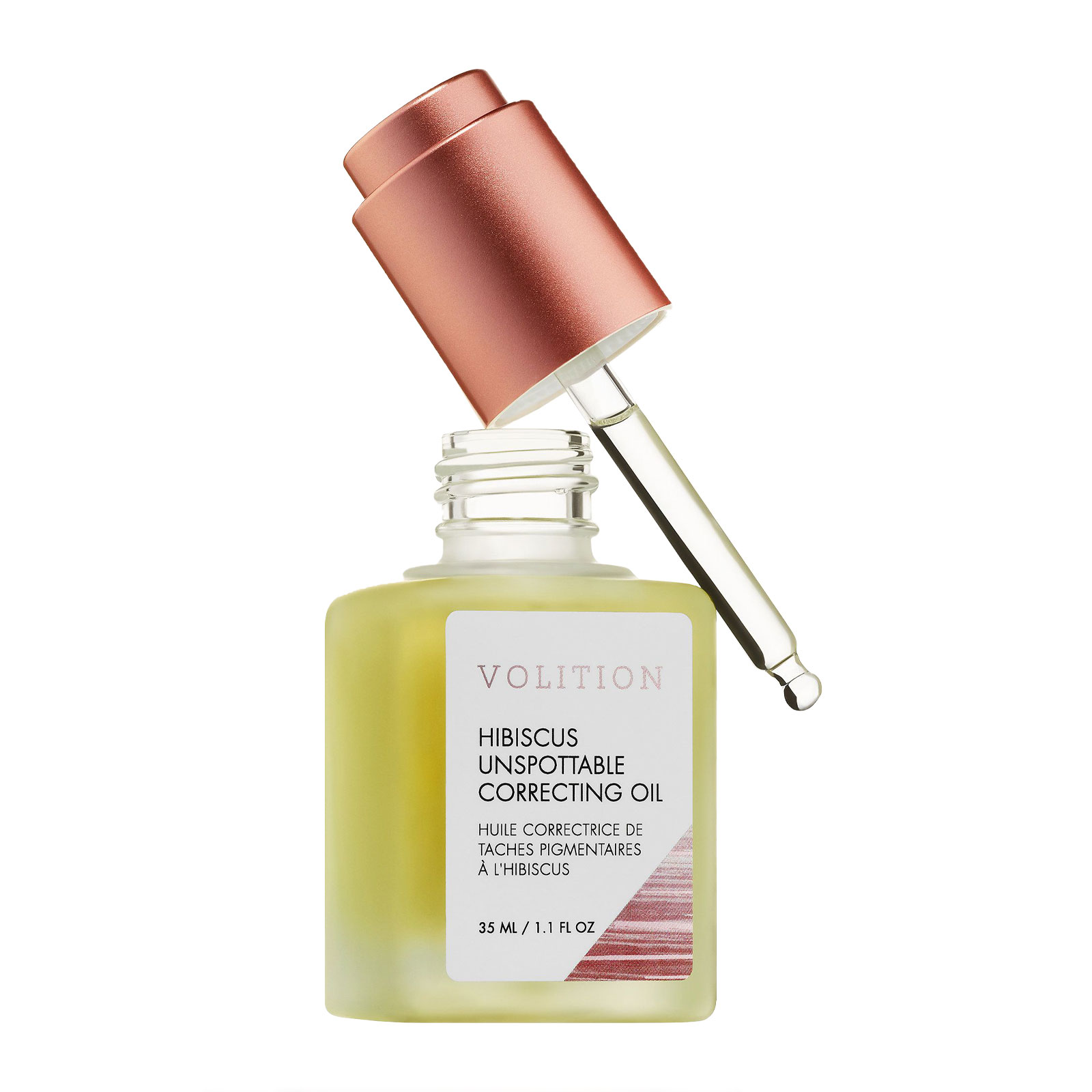 Discover Volition Hibiscus Unspottable Correcting Oil, a daily treatment oil with hibiscus flower and licorice root to minimise the appearance of dark spots and discoloration as it soothes and nurtures Enriched with Hibiscus Oil, Licorice Root Extract & Sea Buckthorn Oil