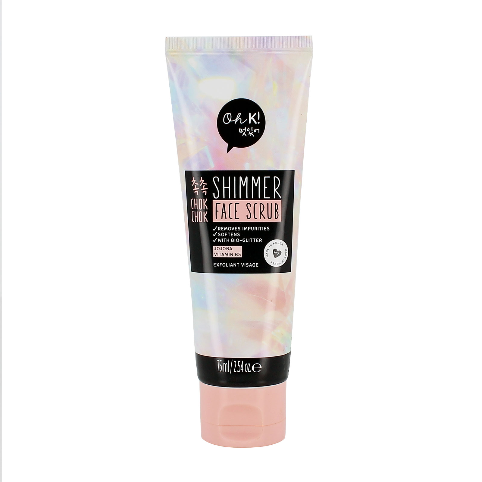 Look good while you scrub with this Oh K! Chok Chok Shimmer Face Scrub! Iridescent biodegradable glitter particles gently wash away impurities and dead skin cells to reveal healthy glowing skin