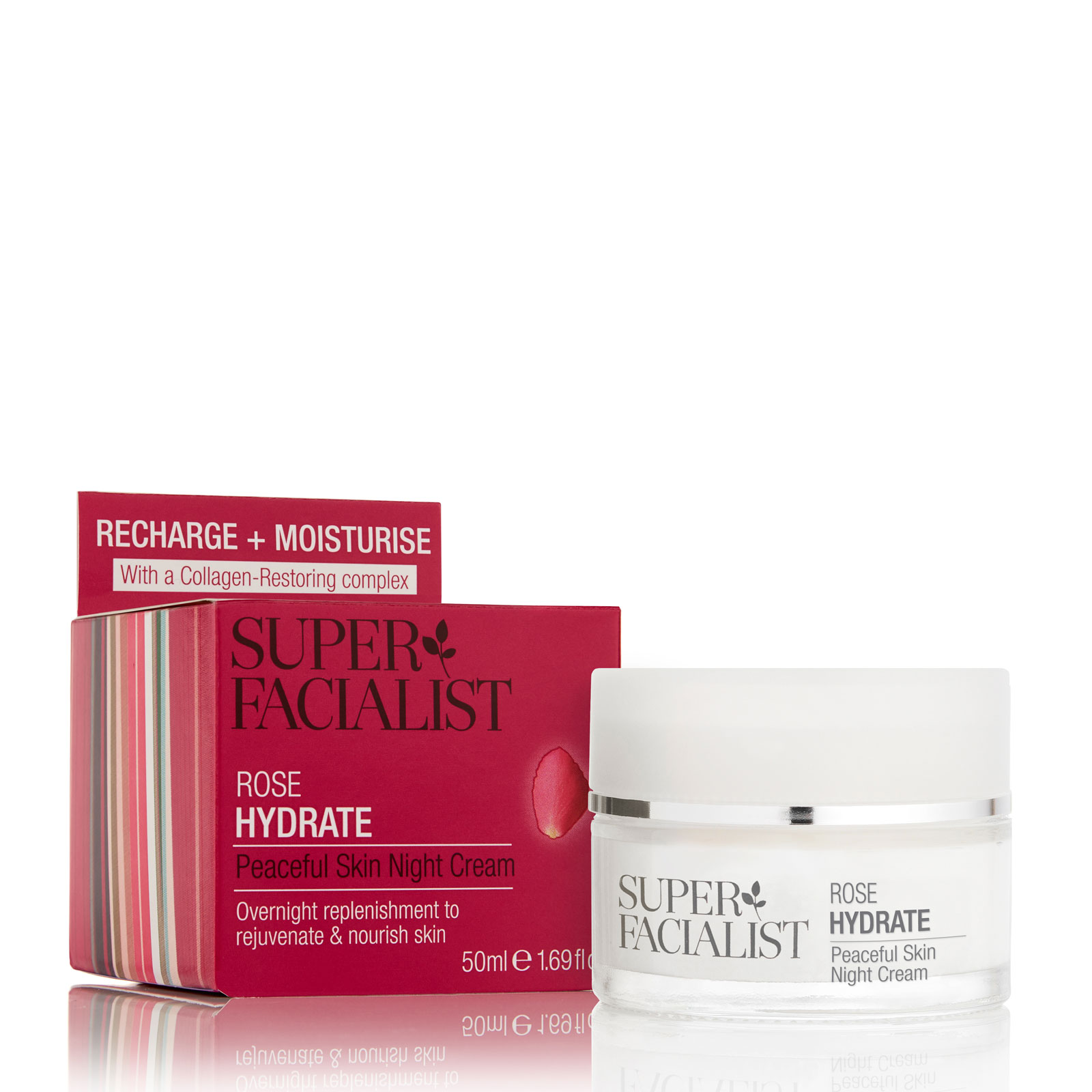 This Super Facialist Rose Hydrate Peaceful Skin Night Cream goes to work while you sleep to help nourish, rejuvenate and protect skin