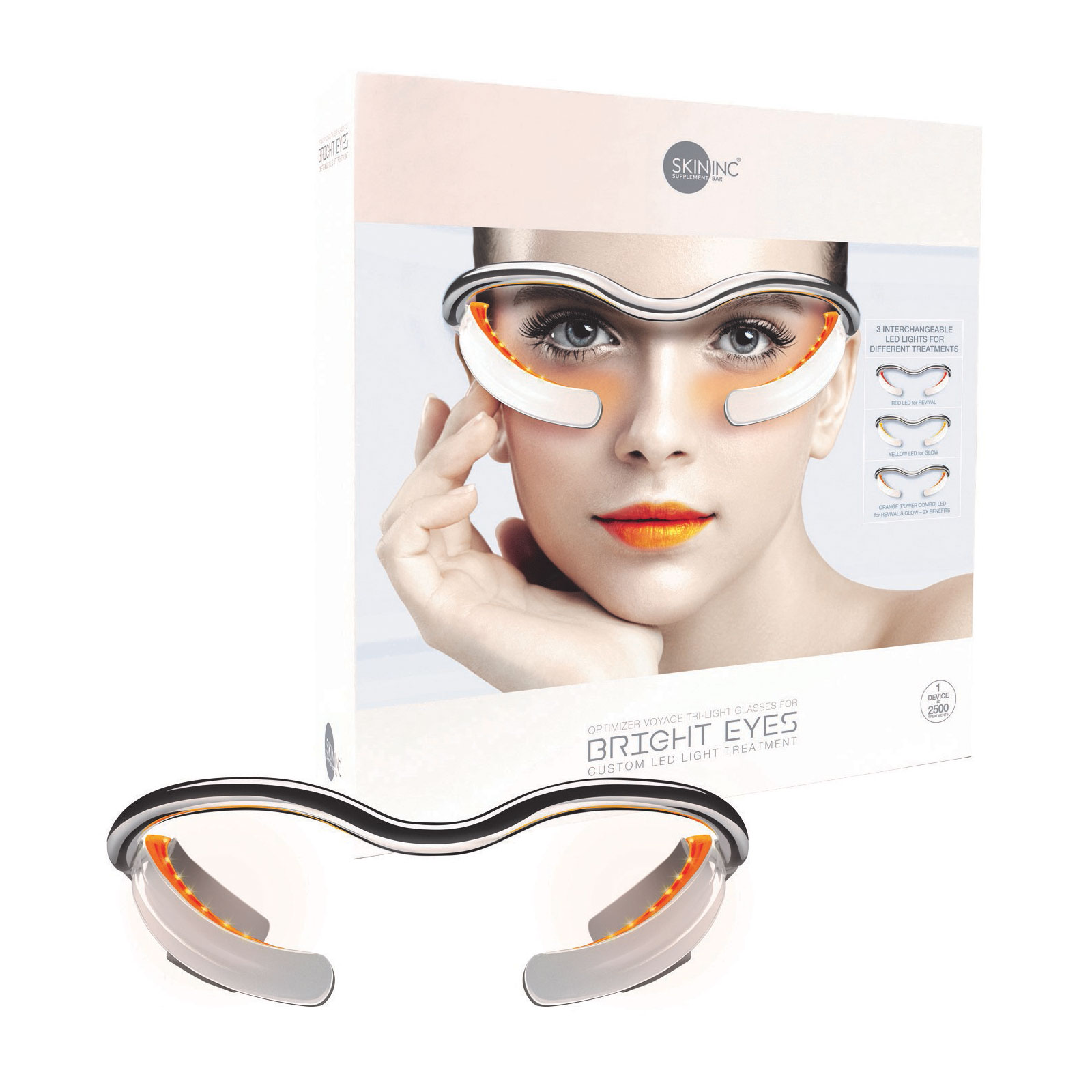 Discover Skin Inc Optimizer Voyage Glasses for Bright Eyes Custom LED Light Treatment, one revolutionary device, three amazing benefits Personalise your custom eye treatment with 3 different LED lights
