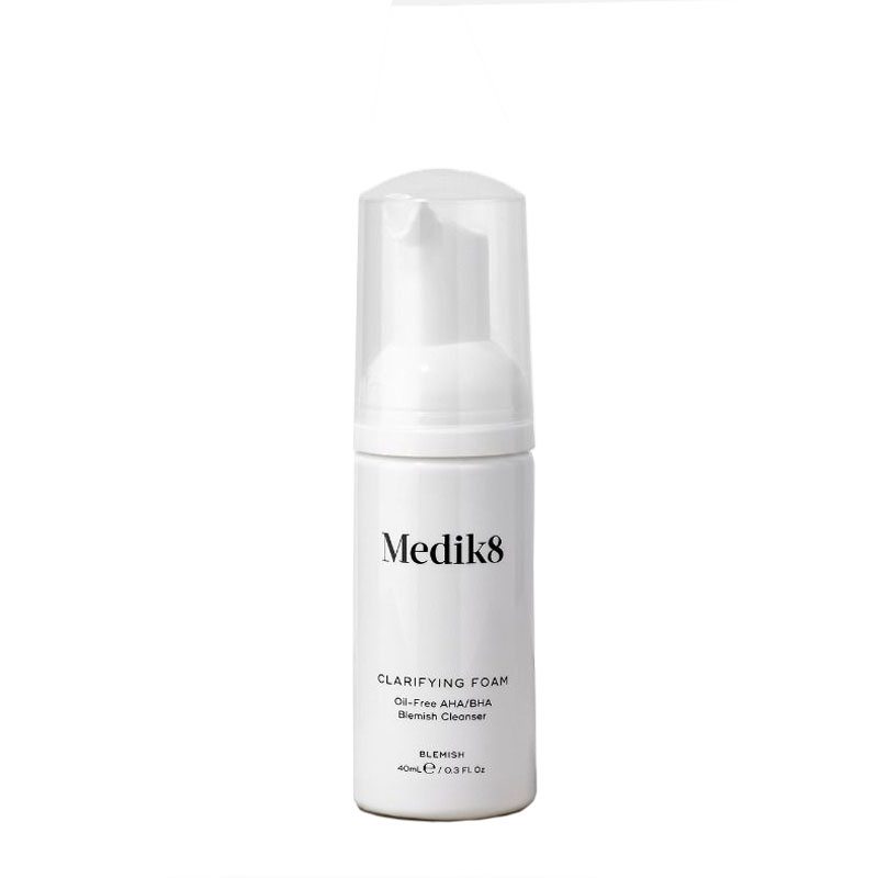 Gently remove daily oil, impurities and make-up with Medik8 Clarifying Foam, an easy-to-use cleanser designed for blemish-prone skin This deeply purifying, antibacterial foaming cleanser unclogs pores and lightly exfoliates the skin without causing dryness or irritation