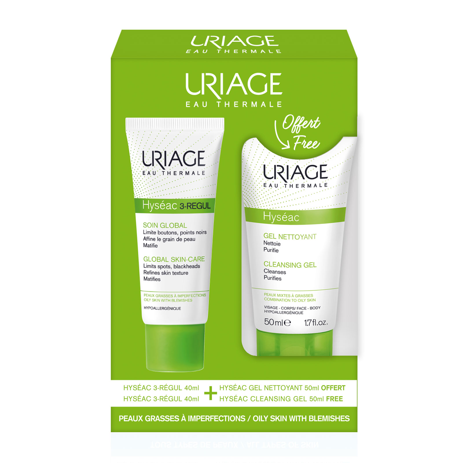 Uriage Hyséac set includes:[B]- 3-Régul Global Skin Care 40ml:[ B] It limits spots and blackheads with a high-performance complex of active ingredients and Uriage Thermal Water Skin texture is significantly smoothed and pores tightened