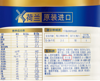 很多新手媽媽說不知道怎么去判斷一罐奶粉的好壞,其實我們可以從奶粉罐上的配料表和營養成分表入手,在這兩粉表中可以知道奶粉用的是什么奶基料,添加了哪些營養配方,還有就是有沒有添加對寶寶成長沒有益處的原料成分。